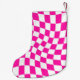 Retro psychedelic modern checked pastel pink and white checks Christmas stocking, with personalised name