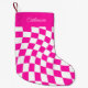 Modern Personalised Name Hot Pink Chequered Small Christmas Stocking