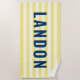 Modern Personalised Name Navy Yellow Striped Beach Towel