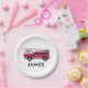 Modern Personalised Name Red Fire truck Birthday Paper Plate