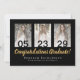 Elegant custom graduation card design featuring gold and silver text over a black background, modern script typography with the words "Congratulations Graduate" (in gold) with your name and school or university (in silver) and date plus three of your favourite photos on the front of the card. Templates for your message and name(s) are on the back of the card.
