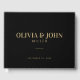 Introducing our Modern Personalised Wedding Reception Guest Book, designed to elevate your special day with elegance and sophistication. This custom guestbook features a sleek black and gold modern minimal design, adding a touch of luxury to your wedding reception. Crafted with a hardcover and high-quality materials, it ensures durability and longevity, preserving your cherished memories for years to come.