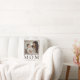 Create a meaningful and cozy keepsake with this modern personalized mom photo throw pillow. Designed with a soft, elegant aesthetic, this pillow features your favorite photo framed in a refined film-style border, paired with bold “MOM” typography and a delicate script message.