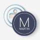 Modern minimalist design features personalized monogram and name in white modern sans serif font style on navy blue background.