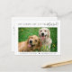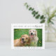 Modern engagement announcement postcard featuring your pets' photo, "Our Humans Are Getting Married" in a mix of simple typography and a stylish script and your first names on the front; you can customise to "My Humans" for one cat or dog and add your wedding location and date if desired. On the reverse side, customise your engagement announcement message and add your names (and the pets' names too) in a signature-like script.