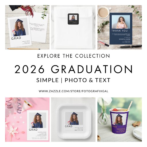 Modern Photo 2024 Graduation Navy Blue. Say Thanks after your graduate celebrations in simple contemporary way with this photo and typography design. Easily personalise the text and replace the photo in the template with your own.