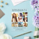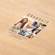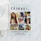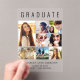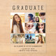 Elegant clear acrylic graduation announcement to celebrate the graduate featuring "GRADUATE" across the top in large typography, a seven photo collage and their name, class year and school in modern typography.