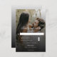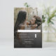Make responding effortless and elegant with this Modern Photo and Black Overlay Wedding RSVP Card, featuring your couple’s photo beneath a soft black overlay for a clean, contemporary feel. Designed with a simple layout, this card combines elegant script with crisp modern typography to highlight your "Kindly respond by" date and key wedding response details. Perfect for a minimalist theme, this stylish piece of photo wedding stationery ensures your guests reply in style—while adding a personal, memorable touch to your invitation suite.