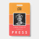 A modern and minimalist name tag and photo badge Press ID, perfect for any news profession: journalists, reporters, photographers, etc... Fully customisable background colours. You can aslo easily add your barcode or QR code for security.