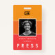 A modern and minimalist name tag and photo badge Press ID, perfect for any news profession: journalists, reporters, photographers, etc... Fully customisable background colours. You can aslo easily add your barcode or QR code for security.