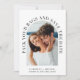 Modern destination wedding save the date card featuring your photo in an arched frame surrounded by "Pack Your Bags And Save The Date" in elegant text. Under your photo, add your first names, wedding date and location. On the reverse side, personalise the save the date details in simple typography.