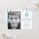 Modern blue photo Bar Mitzvah invitations. Personalise online with your son's photo and Mitzvah details. Star of David design with modern blue, teal and grey accents.