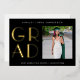 A modern minimalist card to announce a graduation. The front features GRAD in a chic gold foil typography. Personalise with a photo of the graduate, the graduations name, graduating year and school. The reverse has a typography template to personalise with your own message or you can delete all text to leave blank.