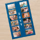 Add your favorite photos to create your own modern 2026 calendar. The 12 images you upload for the months will automatically appear in grids on blue on the front and back covers. Add the year in the sidebar and it will appear on the cover and back in a bold modern font. You can also customize the language, which holidays appear, and calendar format in the sidebar. Makes a great gift!