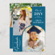 Modern Photo Ocean Blue White Graduation Announcement features three of your favourite photos of your graduate, with the grad's class year, graduates name and school, university or college, degree, qualification or future plans with the swirly modern white calligraphy script overlay "Graduate". On the reverse add your custom message. Simple, stylish and classy. Created by ©2025 Evco Studio www.zazzle.com/store/evcostudio