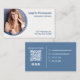 Elevate your brand with this modern business card template designed for the professional who values clean, impactful design. This simple, minimalist layout features a sleek blue and white colour scheme, allowing you to add your photo, include a custom QR code, and link to your business website or social media. Perfect for networking and client meetings, this customisable template makes presenting your information with style and professionalism easy.