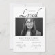 Honour a beautiful life with this elegant Modern Photo Celebration of Life Funeral Service Invitation. Featuring a clean and minimalist design, this template centres around your loved one’s photo, creating a heartfelt tribute that’s simple, timeless, and full of love. The soft typography and layout allow their memory to take centre stage, while customisable text lets you include important service details and a personalised message.