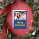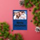 Modern photo Christmas Jesus cross regal navy blue Foil Holiday Card