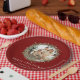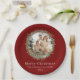 Chrismas Paper Plates with elegant look with the watercolor christmas wreath with a family photo template in red background can add family photos , can change background color, font type and color as your wish.