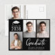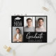 Modern black Class of 2025 graduation party invitation postcard featuring 3 photos, "Graduate" in a contemporary bold white script and the grad's name, class year and high school or college in simple white typography. On the reverse side, add an additional photo and the party details.