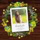 Class of 2025 Graduation announcement card, with a simple photo and an elegant script typography design. With grey customisable lettering, you can add your name and date. You also change the photo with your own image. Great for congratulating that special special graduate.