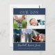 Announce the birth of your son with these four photo modern navy blue baby announcement postcards. Share four photos of your new bundle of joy, his name, birth date and measurements with friends and family.