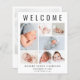 An elegant and budget-friendly birth announcement to introduce your newborn baby to family and friends. This design features "Welcome" across the top in large typography, a 7 photo collage and their name, birth date and birth stats in simple modern typography. On the back, add another photo and a personalised message.