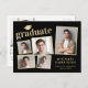 Modern Photo Collage Black Gold Graduation Announcement Postcard