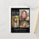 Modern black graduation announcement postcard for her with a 3 picture photo collage on the front. Add her name in a stylish trendy white script and her class year and school or university in white typography. On the reverse, add an additional photo and a custom message.