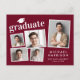 Modern burgundy red graduation announcement postcard. The front features a 5 photo collage of scattered pictures in white frames, "graduate" in bold trendy white typography and the grad's name, school and class year in simple white typography. On the back, add an additional photo and customise your announcement message.