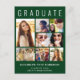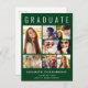 Modern green graduation party invitation postcard with "GRADUATE" written in large white letters, a seven photo collage of the graduate and their name, class year and school in simple white typography. Personalise your party details on the back.