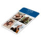 Introducing our Custom Photo Collage Magnet, where you curate a unique timepiece to complement your decor. This design showcases a sleek grid-style collage, accommodating four cherished photos, your name, and an inspiring slogan. Insert your images clockwise from the top left effortlessly, thanks to the thoughtfully arranged template. Against a sophisticated blue backdrop with crisp white lettering, this magnet exudes timeless elegance. Transform your space with our personalised magnet and showcase your memories in style!