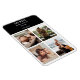 Introducing our Custom Photo Collage Magnet, where you curate a unique timepiece to complement your decor. This design showcases a sleek grid-style collage, accommodating four cherished photos, your name, and an inspiring slogan. Insert your images clockwise from the top left effortlessly, thanks to the thoughtfully arranged template. Against a sophisticated black backdrop with crisp white lettering, this magnet exudes timeless elegance. Transform your space with our personalised magnet and showcase your memories in style!