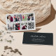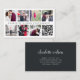 Chic and elegant business cards for photographers feature seven of your best photos arranged in a collage layout, bisected by your name or business name in modern lettering, with a customisable QR code. Add your full contact details to the back in crisp white on a soft off-black background.