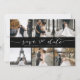 Pick the best pictures from your engagement shoot or your favourite pictures of the two of you for this perfect save the date. The words save the date are handwritten to give a personal feel to the card. The front has 6 images and the back has a large image with a white filter on top. Edit this save the date wedding card with your information and customise it for further font and font colour options.