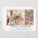 Announce your special day in style with this modern photo collage Save the Date card. Featuring three customizable photo panels, elegant typography, and a clean minimalist layout, this design beautifully showcases your engagement photos and wedding date. Perfect for contemporary couples who love a timeless yet personal touch. Easily edit names, date, and location to create a unique keepsake your guests will love.