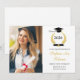 Celebrate in style with this simple and stylish graduation announcement card. Add your favorite photo and details. Design features class of 2025 in elegant script with illustration of laurel wreath, a grad cap topper and diploma. A photo of the graduate with their name and details in a mix of stylish black and gold typography on a clean white background. Back of card has a replica of the laurel wreath design. Easy to customize. Congratulations!