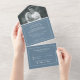 Modern Photo Dusty Blue Wedding RSVP All In One Invitation
