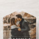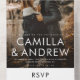 A modern typographic overlay with large names and a full bleed photo are the features on this all in one wedding invitation with tear off response card. Click the personalise button to customise this design.