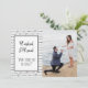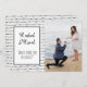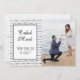 This modern funny engagement announcement/Save the Date features your own photo and the cute saying, "He asked, she said, 'What took you so long?'" (which can be changed to your own text.) A great way to say "We're engaged!" Background features a pattern of hearts on both the front and the back. Easy to customise with your own engagement information!