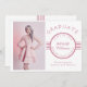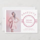 This modern design features the text "Graduate" and the editable text for your name, class, school and proud parents (or your preferred text) in popular salmon pink typography on a white background. Add your own photo on the left of the card. On the reverse of the card are five vertical lines. Personalise by editing the text in the text box.