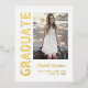 This modern photo graduation announcement features your photo, school and class year headline with customisable script. Photo template via Pixabay licensed under CC0 and must be replaced with your own photo