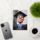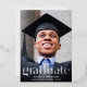 An elegant and stylish graduation announcement and party invitation that features your grad's photo overlayed with "Graduate" written in a trendy large type in real silver foil and his or her name, school and class year. Add another photo and the party details on the back.