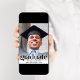 An elegant graduation party invitation that features the grad's photo overlayed with "Graduate" in trendy large letters and their name, school and class year in simple typography. On the back, add an additional photo and your party details.