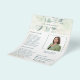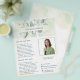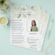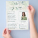 Elegant business flyer featuring your name in between a top and bottom border of eucalyptus leaves and greenery with a hint of blue, over a pastel watercolor wash. Use the template to add your photo and bio. This rustic style flyer is great for a new real estate agent / realtor to pass out as a introduction / farming letter.