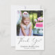 Modern thank you card for her birthday party featuring her photo and "Thank You" in an elegant contemporary script with a heart swash. Personalise with her first name and the event date in simple typography. On theback, add an additional photo, her customised thank you message and her name in a signature-like script.