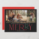 Modern Photo Merry Black Red Green Holiday Card