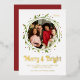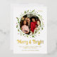 Modern Photo Merry & Bright Script Wreath Foil Holiday Card