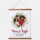 Modern Photo Merry & Bright Script Wreath Floral Christmas Holiday Hanging Tapestry features a winter floral wreath surrounding your favourite photo with the text "Merry & Bright" and your personalised message below in modern script typography. Fabulous for Christmas parties, holiday celebrations and home decor. Designed by © Evco Holidays www.zazzle.com/store/evcoholidays