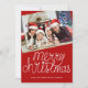 Modern Photo Merry Christmas script holiday card in red and white. The back is left blank to put your own handwritten message